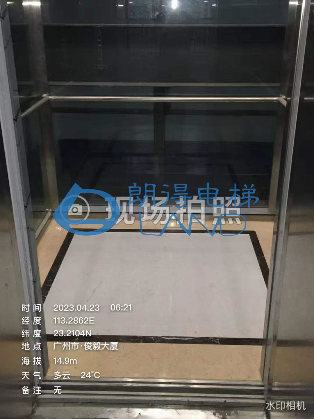 广州俊毅大厦-轿厢装潢系列:大门套,大理石地板完工
