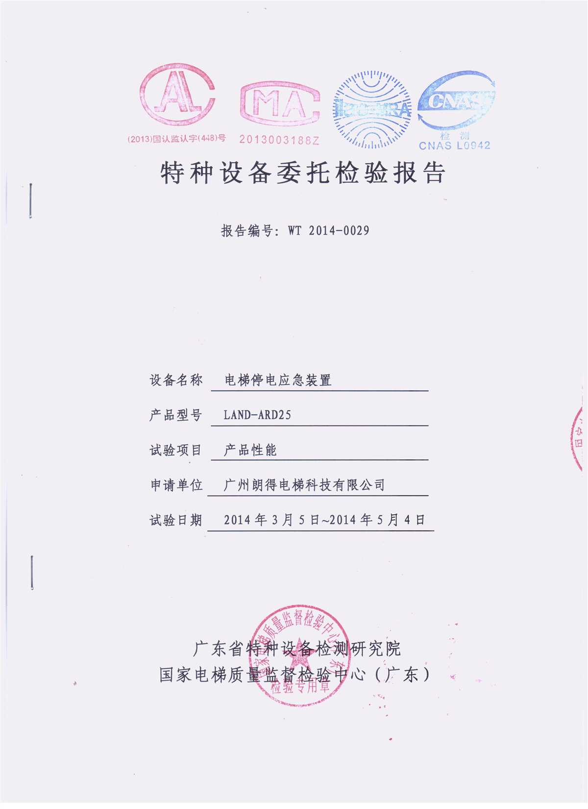 应急装置质检报告