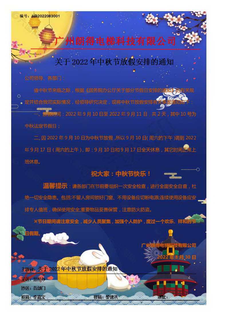 关于2022年中秋节放假通知